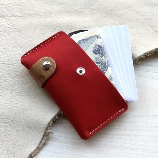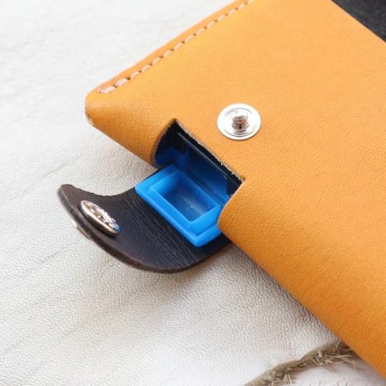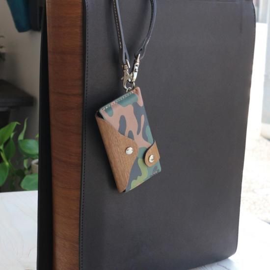 大粒ミンティア専用レザーケース「ポケッティア ビッグ」。本体かぶせパーツとミント取り出しフラップはウッド素材になっております。かぶせの緩やかな曲線がデザインのポイント。ミンティアケースとして以外もカードが10枚ほど入るサイズになっていますので、小型の財布としてもご利用いただけます。またスマートキーやその他小物入れとしてもご利用ください。背面にはDカンが付いていますので、ストラップ類とジョイントも可能となっています。