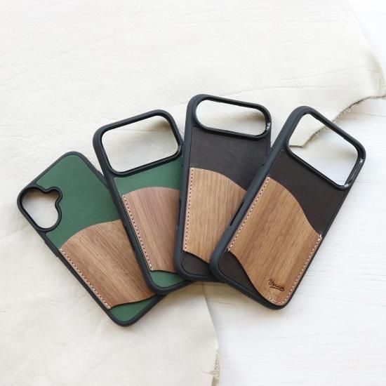 iPhone17シリーズ(17/16Pro/17Air/17ProMAX)対応のオープンタイプケースです。本体ベースはTPU素材で着脱もしやすく落下時の衝撃も軽減することができます。裏側にはカーブデザインが特徴的なウッド素材のカードポケットがあります。素材はVARCOオリジナルのキップ手染めレザーとイタリア製人気レザーのプエブロをご用意しております。フタつきケースとは一味違う操作性のしやすさとカジュアルなテイストが魅力です。貴方のiPhoneをスタイリッシュにかつ優しく包み込むオープン型ケースを是非ご利用下さい。※17ProMaxはノーマルレザー4,200円 プエブロ4,700円となります。